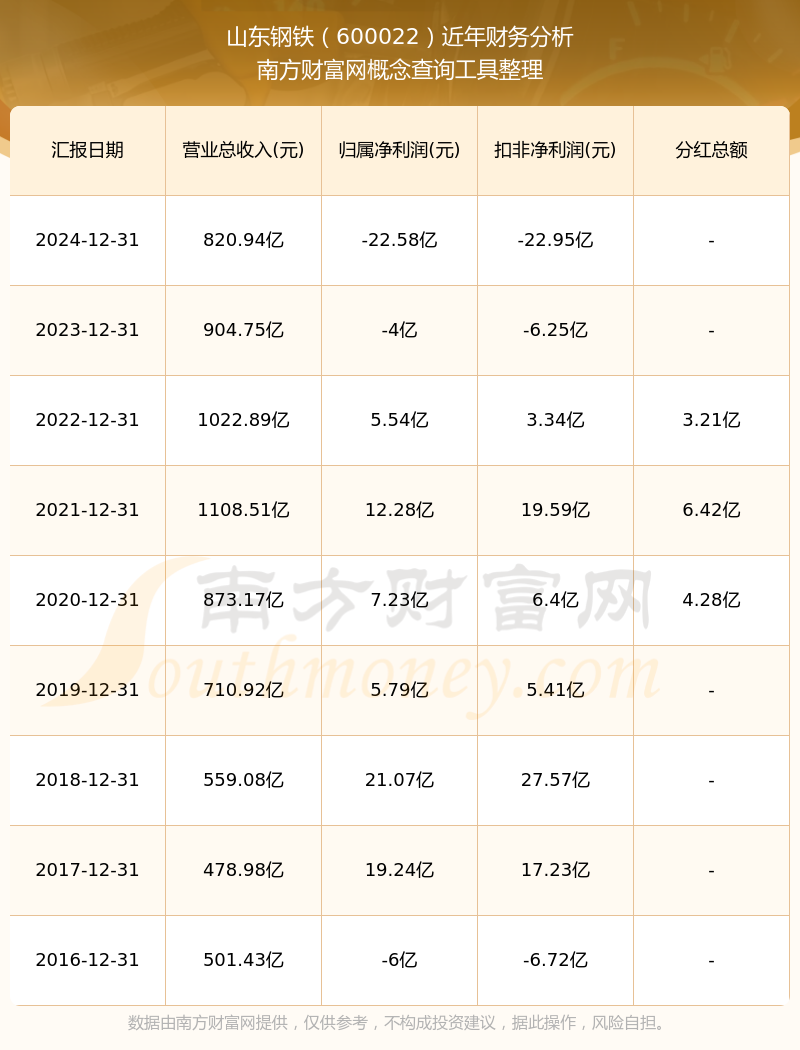 山東鋼鐵歷年分紅派息情況如下表所示: