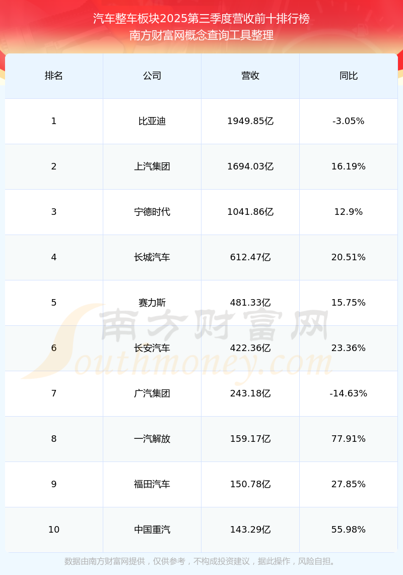 按照南方財富網(wǎng)概念查詢工具統(tǒng)計,該股所屬板塊為汽車整車板塊,該板塊共有53只股票,曙光股份2025第三季度營收在該板塊中排名為第44名,該板塊2025第三季度營收排名前十的股票如下表: