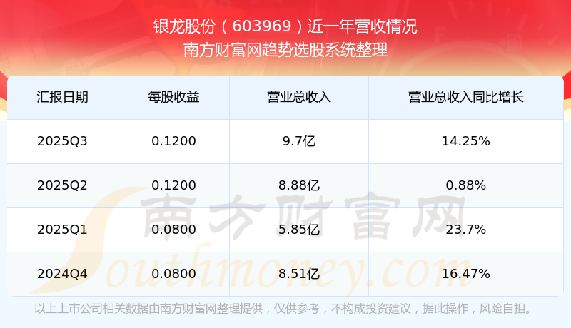 在2025年第三季度,銀龍股份的業(yè)績表現(xiàn),主營業(yè)務(wù)收入達到9.7億元,實現(xiàn)了14.25%的同比增長率。同時,公司歸母凈利潤錄得1.01億元,同比增長48.51%。