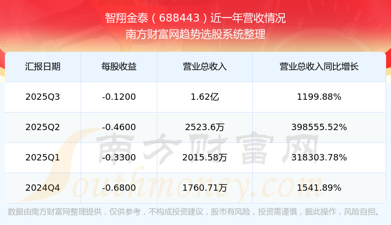 2025年第三季度,智翔金泰營(yíng)收同比1199.88%,凈利潤(rùn)同比76.52%。