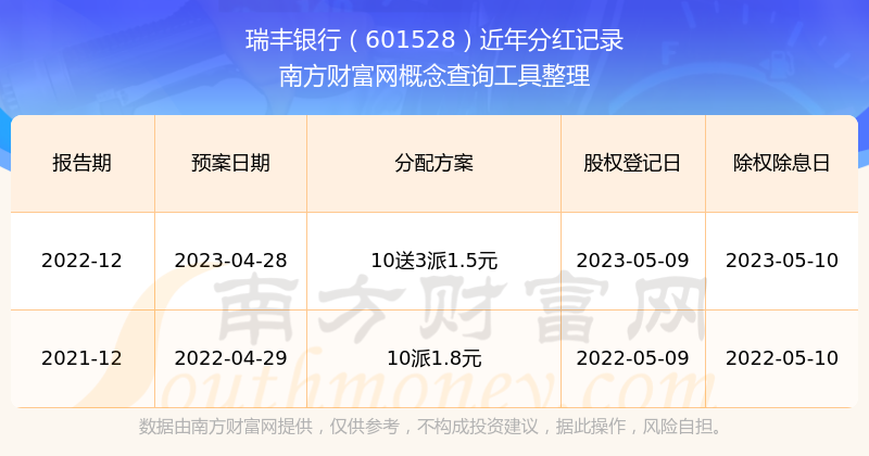 瑞豐銀行最新一次公布的分紅方案:10送3派1.5元。