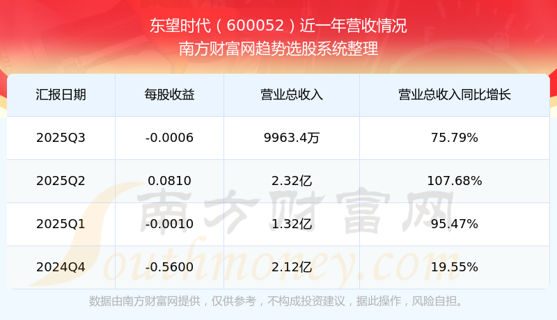 于2025年第三季度,東望時(shí)代披露了其業(yè)績(jī)表現(xiàn),其中主營(yíng)業(yè)務(wù)收入9963.4萬(wàn)元,相較于去年同期75.79%。此外,公司歸屬于母公司的凈利潤(rùn)為-46.92萬(wàn)元,同比增長(zhǎng)了90.74%。在扣除所有非經(jīng)常性損益后,凈利潤(rùn)-2495.37萬(wàn)元,同比增長(zhǎng)-12.15%。