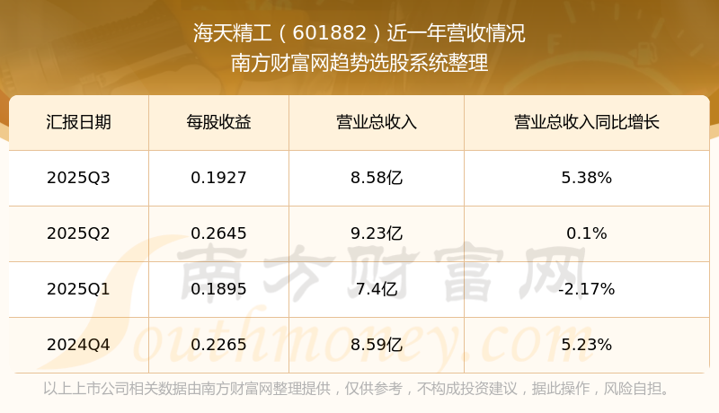 海天精工發(fā)布2025年第三季度財(cái)報(bào)。實(shí)現(xiàn)總營收8.58億元,同比增長5.38%;扣非凈利潤同比增長-8.7%至9554.3萬元。