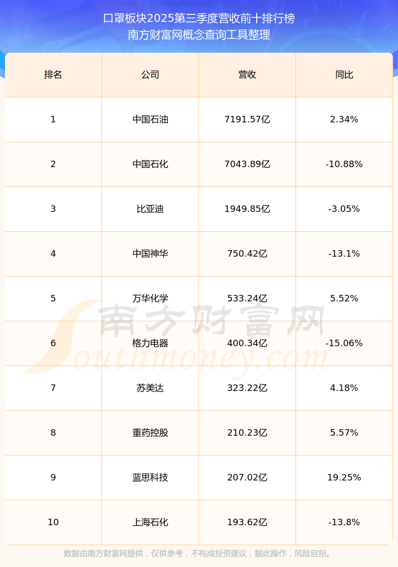 按照南方財(cái)富網(wǎng)概念查詢工具統(tǒng)計(jì),該股所屬板塊為口罩板塊,該板塊共有211只股票,振德醫(yī)療2025第三季度營收在該板塊中排名為第77名,該板塊2025第三季度營收排名前十的股票如下表: