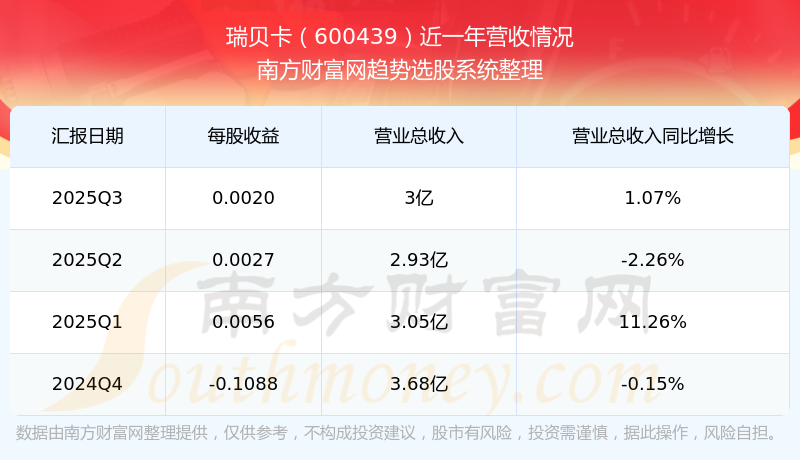 瑞貝卡(600439)發(fā)布2025年第三季度財報。2025年第三季度瑞貝卡實現(xiàn)營業(yè)收入3億元,同比增加1.07元%,環(huán)比增加2.62%;凈利潤為233.18萬元,同比增長27.91%,環(huán)比增長-22.67%。