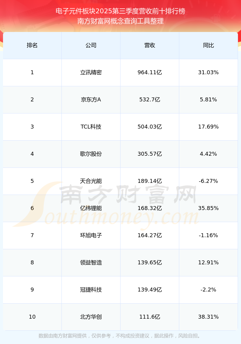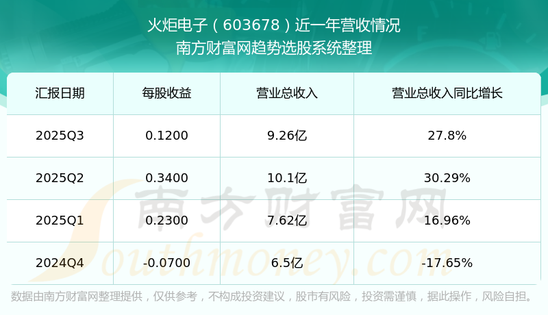 按照南方財(cái)富網(wǎng)概念查詢工具統(tǒng)計(jì),該股所屬板塊為電子元件板塊,該板塊共有354只股票,火炬電子2025第三季度營(yíng)收在該板塊中排名為第127名,該板塊2025第三季度營(yíng)收排名前十的股票如下表: