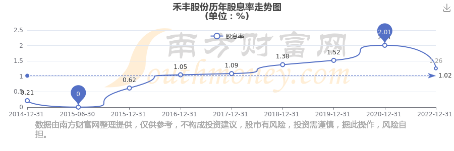 近年禾豐股份年度股息率走勢如下圖: