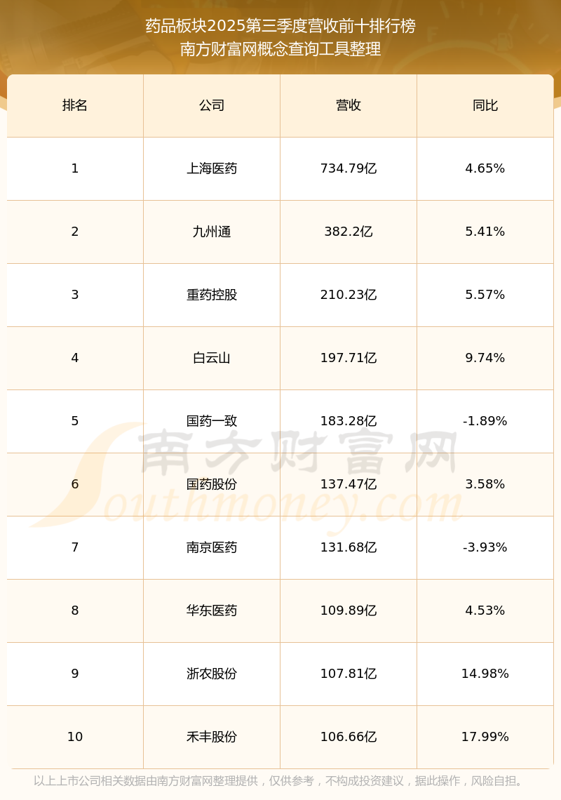 按照南方財富網(wǎng)概念查詢工具統(tǒng)計,該股所屬板塊為藥品板塊,該板塊共有278只股票,神州細(xì)胞2025第三季度營收在該板塊中排名為第278名,該板塊2025第三季度營收排名前十的股票如下表: