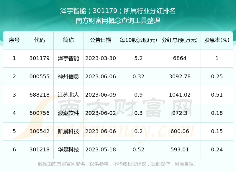 按照南方財富網(wǎng)趨勢選股系統(tǒng)統(tǒng)計,澤宇智能所屬行業(yè)為系統(tǒng)集成行業(yè),系統(tǒng)集成行業(yè)分紅排名情況如下表: