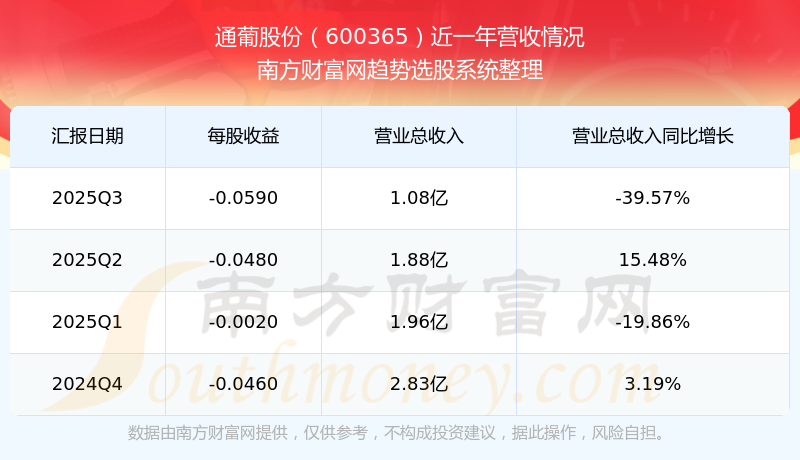 通葡股份(600365)發(fā)布2025年第三季度財報。2025年第三季度通葡股份實現(xiàn)營業(yè)收入1.08億元,同比增加-39.57元%,環(huán)比增加-42.71%;凈利潤為-2526.7萬元,同比增長-458.77%,環(huán)比增長-13.6%。