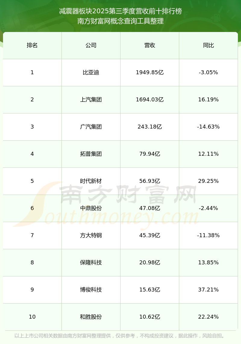 按照南方財(cái)富網(wǎng)概念查詢工具統(tǒng)計(jì),該股所屬板塊為減震器板塊,該板塊共有21只股票,正裕工業(yè)2025第三季度營收在該板塊中排名為第12名,該板塊2025第三季度營收排名前十的股票如下表: