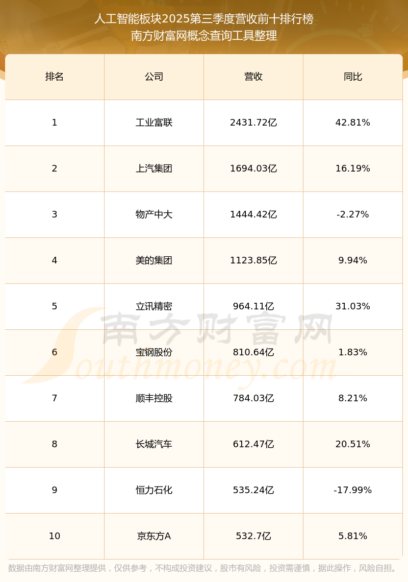 按照南方財(cái)富網(wǎng)概念查詢工具統(tǒng)計(jì),該股所屬板塊為人工智能板塊,該板塊共有981只股票,佳都科技2025第三季度營(yíng)收在該板塊中排名為第151名,該板塊2025第三季度營(yíng)收排名前十的股票如下表: