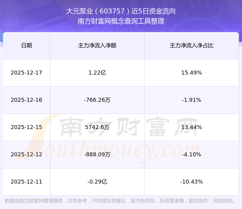 二、大元泵業(yè)(603757)近期盤面、資金面情況