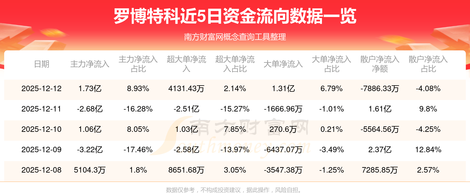 數(shù)據(jù)由南方財(cái)富網(wǎng)提供,僅供參考,不構(gòu)成投資建議,據(jù)此操作,風(fēng)險(xiǎn)自擔(dān)。股市有風(fēng)險(xiǎn),投資需謹(jǐn)慎。