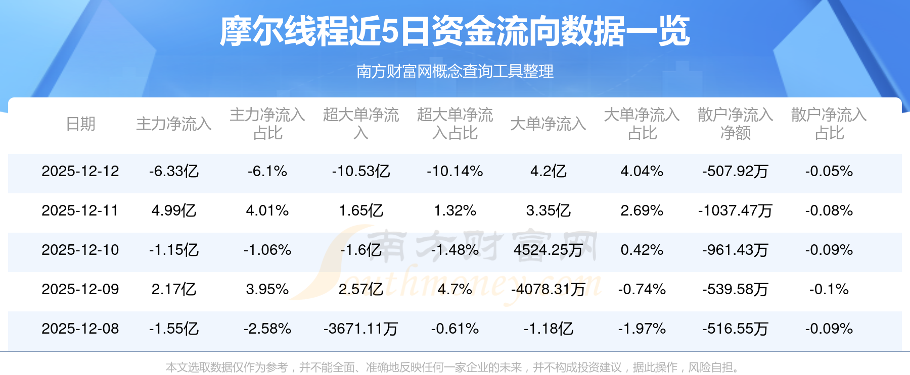 12月12日消息,摩爾線程主力資金凈流出6.33億元,超大單資金凈流出10.53億元,散戶資金凈流出507.92萬元。