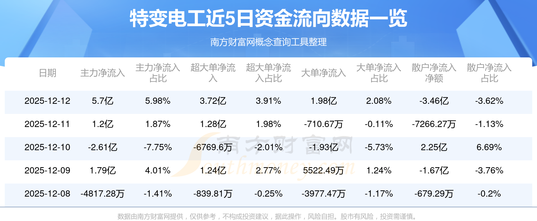 資金流向數(shù)據(jù)方面,12月12日主力資金凈流流入5.7億元,超大單資金凈流入3.72億元,大單資金凈流入1.98億元,散戶資金凈流出3.46億元。
