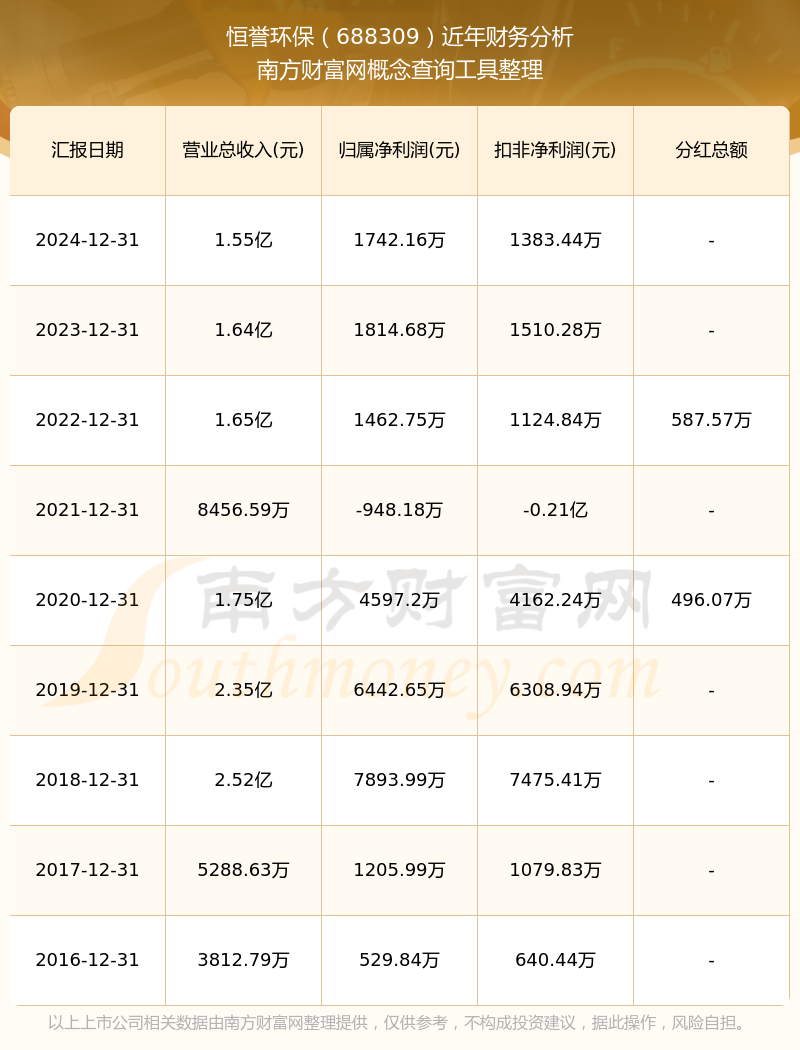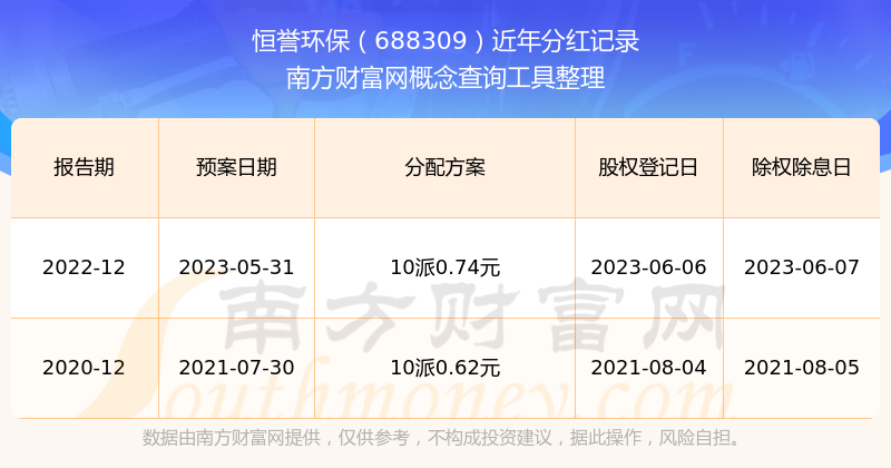 恒譽(yù)環(huán)保歷年分紅派息情況如下表所示: