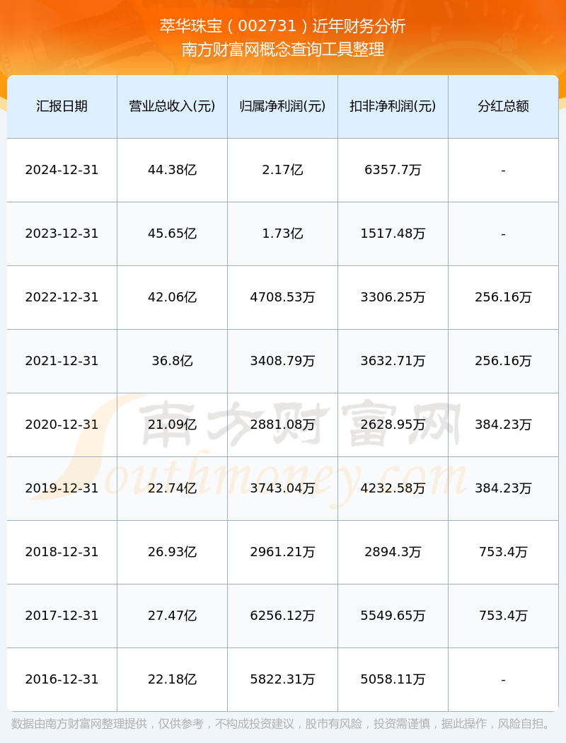 萃華珠寶最新一次公布的分紅方案:10派0.1元。