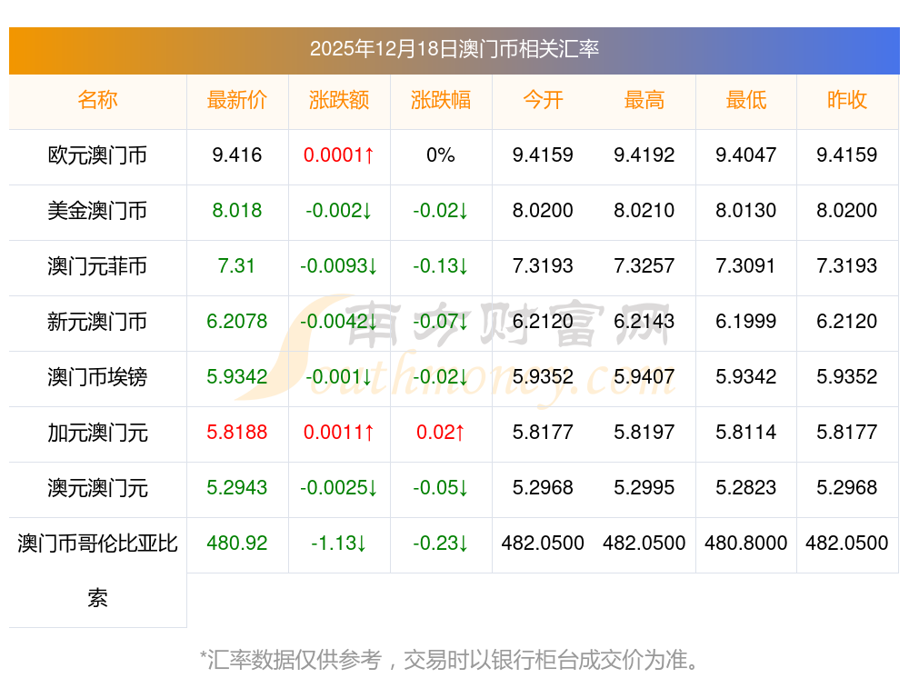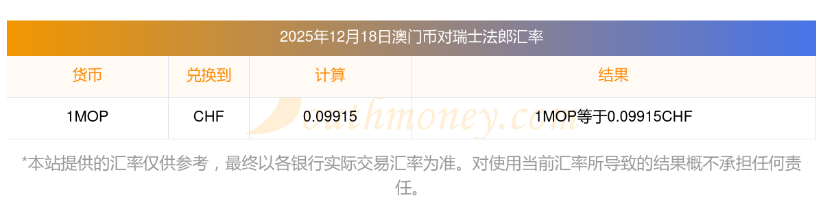 今天澳門幣轉(zhuǎn)換瑞士法郎匯率外匯查詢? 2025-12-18