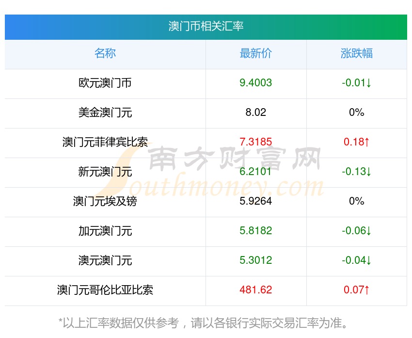 2025年12月19日澳門幣相關(guān)匯率查詢
