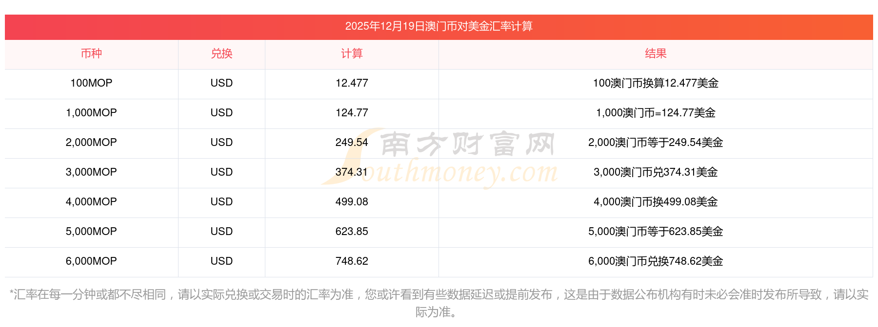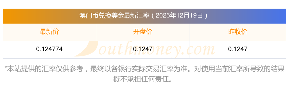 南方財(cái)富網(wǎng)為您提供澳門幣對(duì)美金匯率最新價(jià)格詳情。