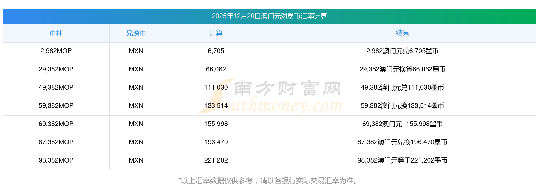 今7澳門元兌換墨幣的匯率是多少 外匯如何查詢12月20日