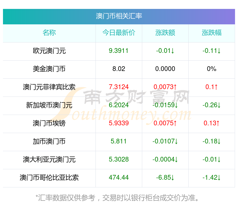 南方財富網(wǎng)為您提供澳門幣對美金匯率最新價格詳情。