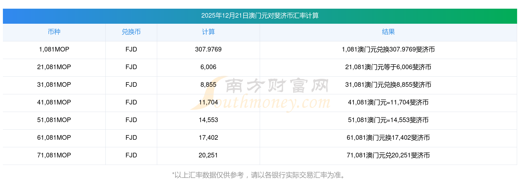 今天澳門元兌換斐濟幣多少_不同貨幣兌換比例查詢(2025-12-21)