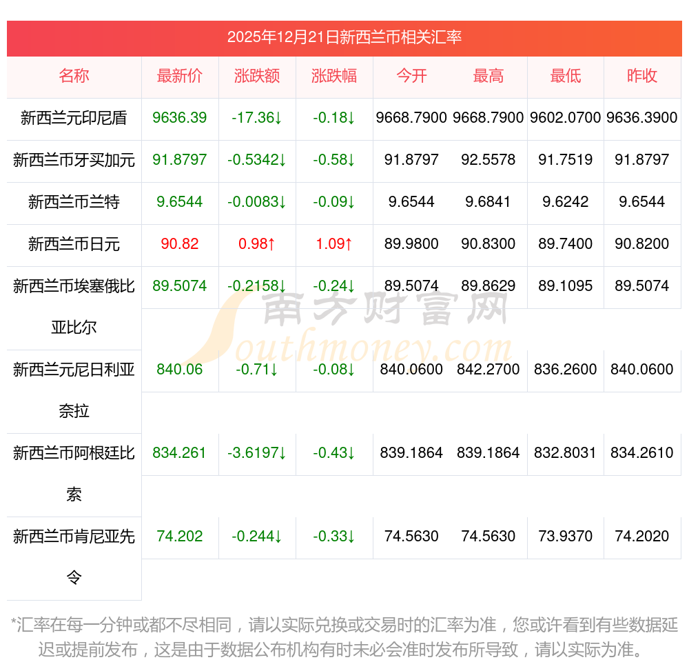 2025年12月21日新西蘭幣相關(guān)匯率查詢