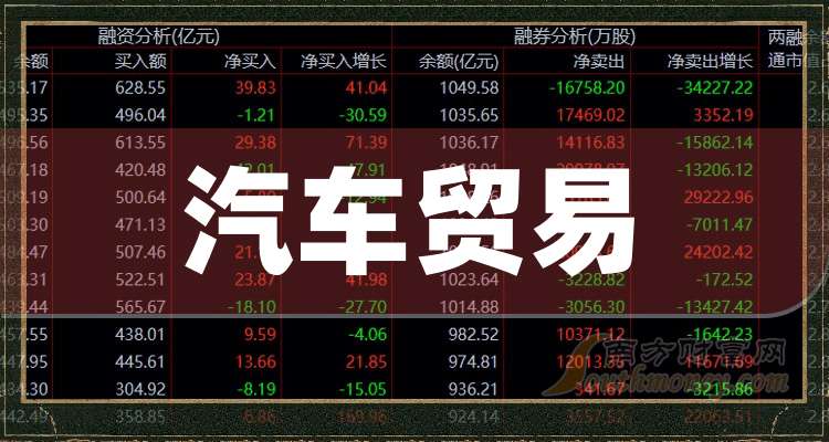 據(jù)南方財(cái)富網(wǎng)概念庫(kù)數(shù)據(jù)顯示,汽車貿(mào)易題材上市企業(yè):