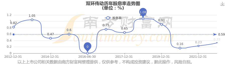 近年雙環(huán)傳動(dòng)年度股息率走勢(shì)如下圖: