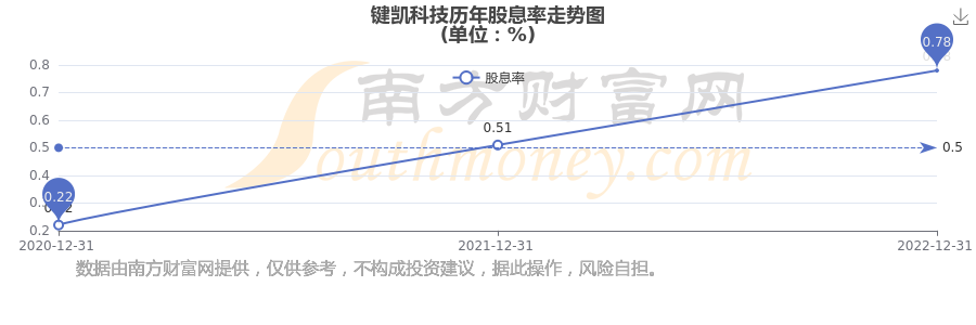 近年鍵凱科技年度股息率走勢(shì)如下圖: