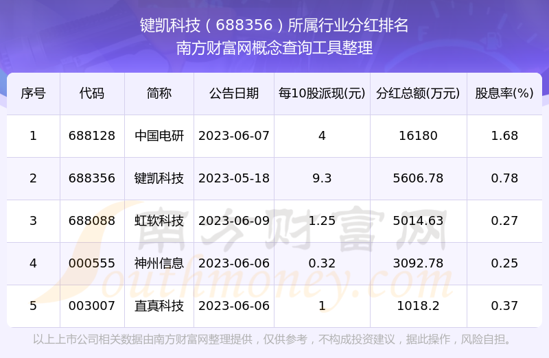 按照南方財(cái)富網(wǎng)趨勢(shì)選股系統(tǒng)統(tǒng)計(jì),鍵凱科技所屬行業(yè)為軟件開(kāi)發(fā)行業(yè),軟件開(kāi)發(fā)行業(yè)分紅排名情況如下表: