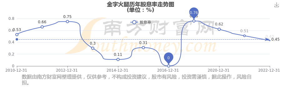 近年金字火腿年度股息率走勢(shì)如下圖: