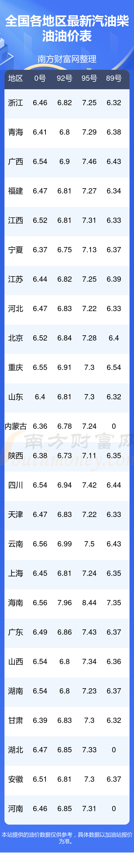 附:最新全國(guó)汽油、柴油價(jià)格一覽表