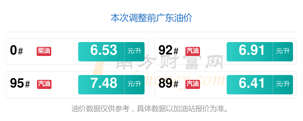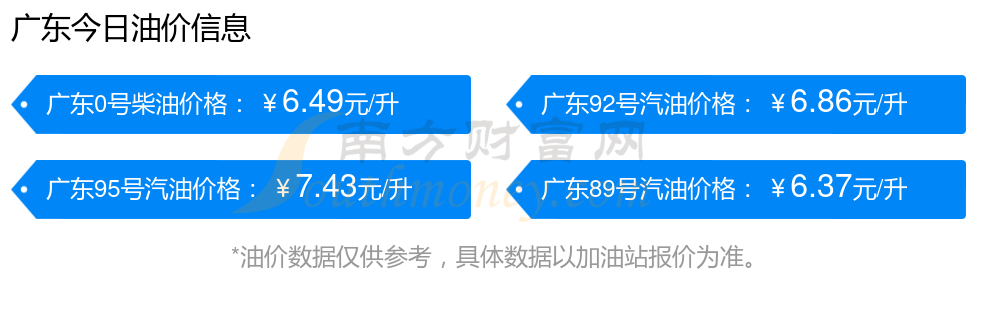 以上數(shù)據(jù)僅供參考,請以您所在地區(qū)的加油站實際售價為準。南方財富網(wǎng)發(fā)布此信息的目的在于傳播更多信息,對使用該油價信息所導致的結(jié)果概不承擔責任。