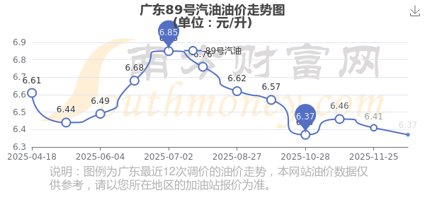 12月14日,廣東89號汽油的價格是6.37元每升,本次的調(diào)整時間為12月9日,對比上次的調(diào)整跌了0.04元,跌0.624%,下次調(diào)整時間為12月22日24時,還有8.26天。