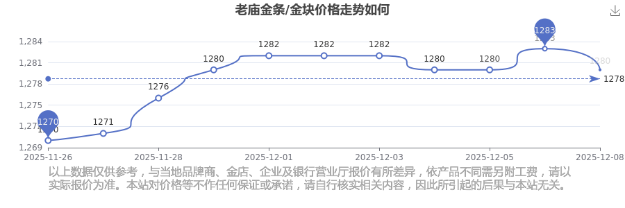 2025年12月9日老廟今日金條/金塊價(jià)格是多少一克?最新金條/金塊價(jià)格走勢(shì)一覽