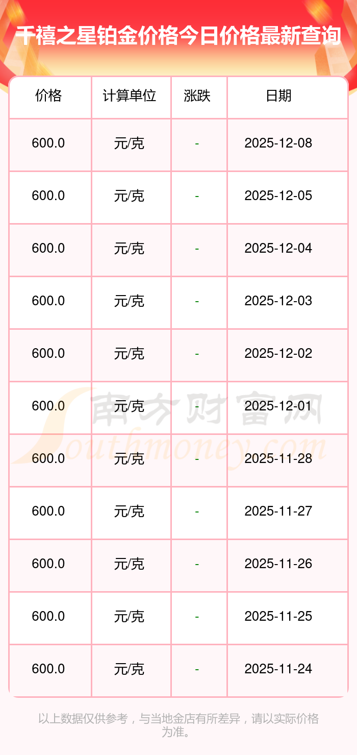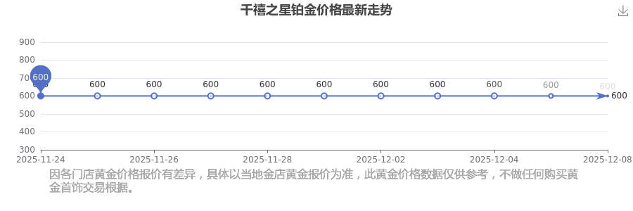 千禧之星 鉑金價(jià)格于今日的最新掛牌價(jià)為600.0元/克。