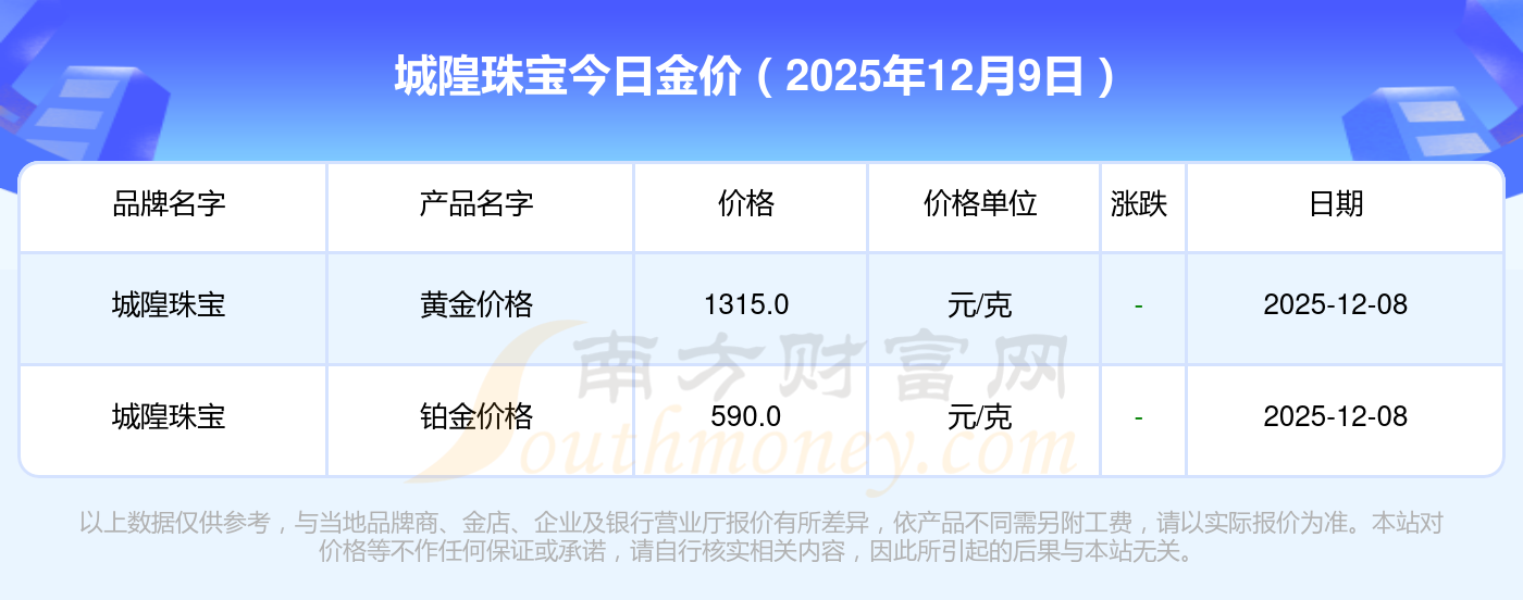 城隍珠寶今天的黃金價(jià)值幾何?詳情如下: