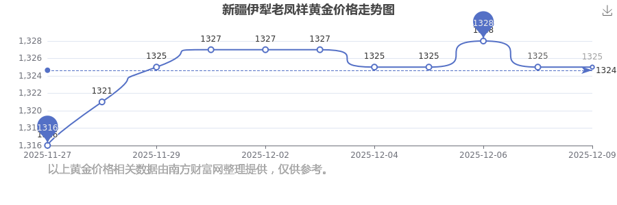 今日新疆伊犁老鳳祥黃金價格:1325.0元/克。