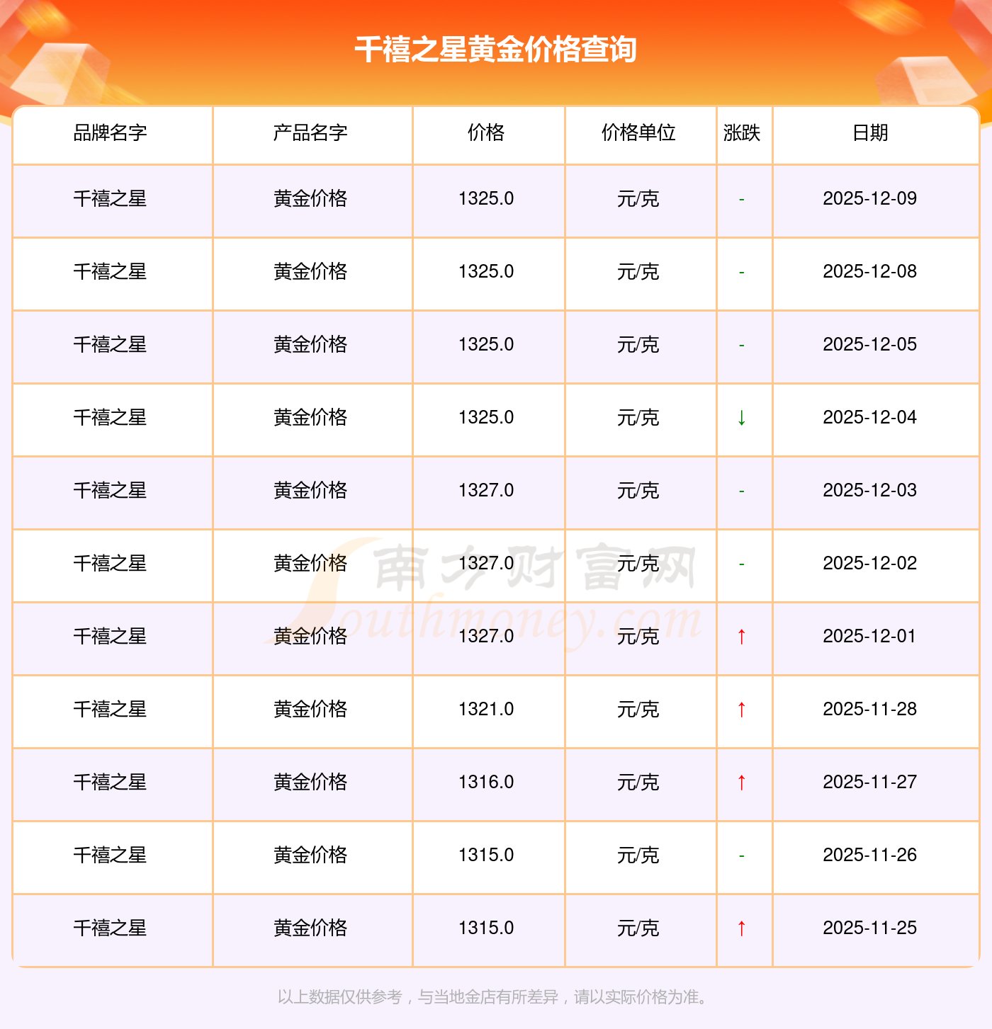 今日黃金售價(jià)多少?現(xiàn)在黃金一克值多少錢(qián)呢?作為優(yōu)良的導(dǎo)電導(dǎo)熱材料,黃金具備良好的導(dǎo)熱特性。因?yàn)榛瘜W(xué)穩(wěn)定性高、抗氧化性強(qiáng),能制作高精度電子元件,所以在電子工業(yè)的特殊電路設(shè)計(jì)中經(jīng)常使用它。2025年12月9日千禧之星黃金價(jià)格最新為1325.0元/克。