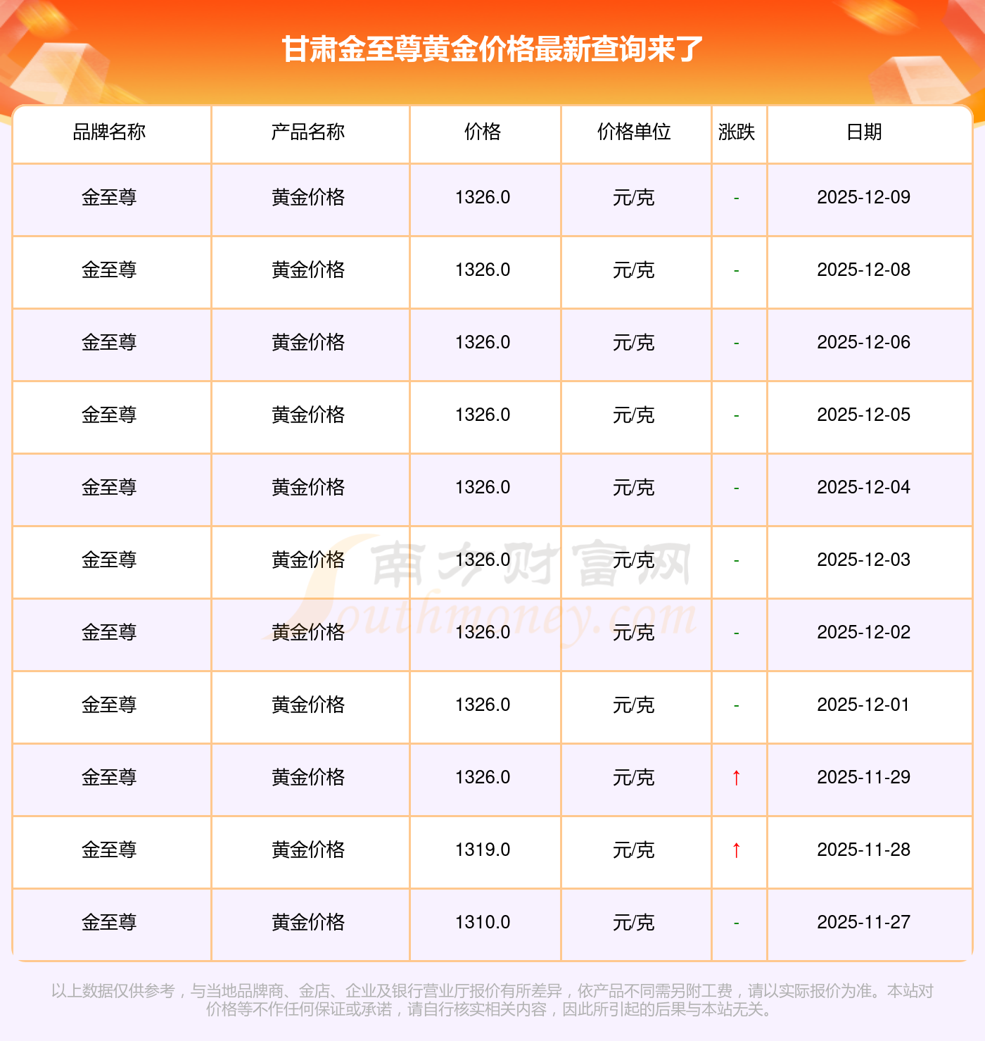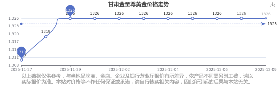 2025年12月9日,甘肅金至尊的黃金價(jià)格標(biāo)價(jià)達(dá)到 1326.0元/克。