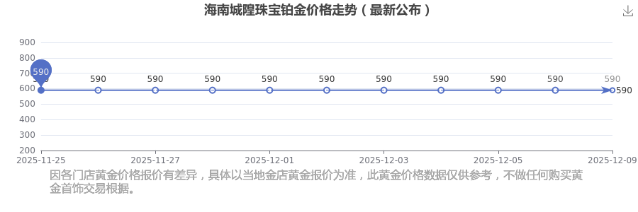 2025年12月9日海南城隍珠寶鉑金價(jià)格:590.0元/克。