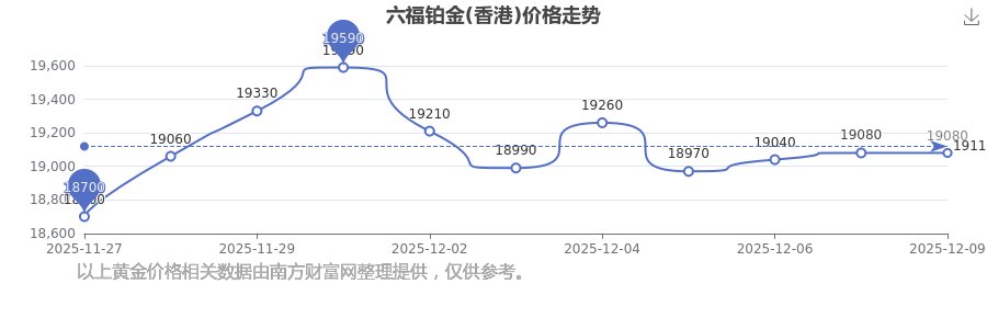 六福 鉑金價(jià)格(香港)今日最新的價(jià)位是19080.0。