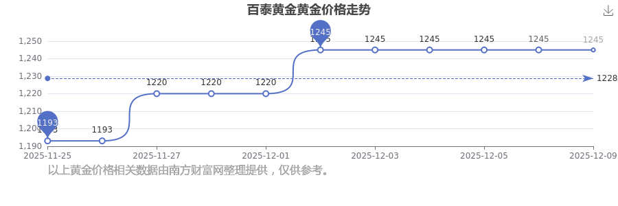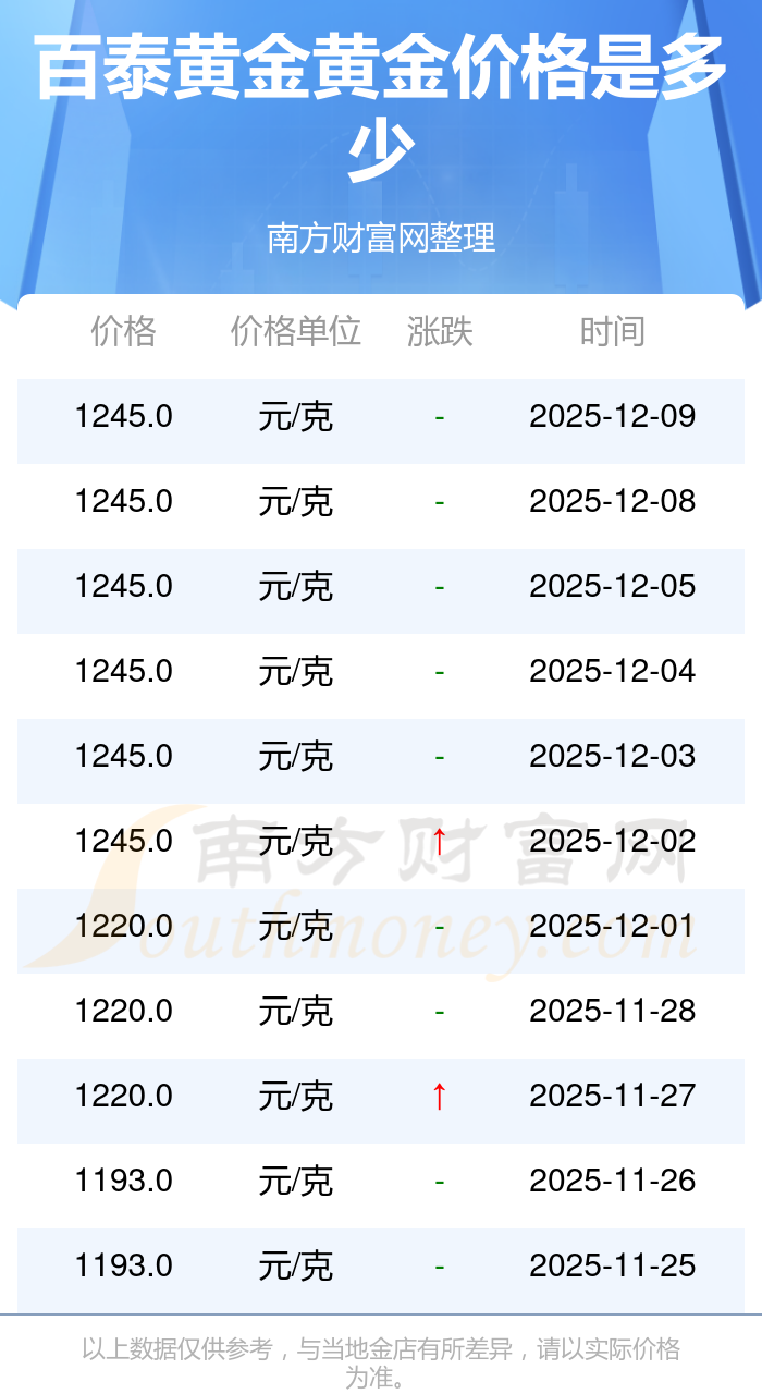 今日百泰黃金所公布的 黃金價(jià)格最新價(jià)格為1245.0元/克。