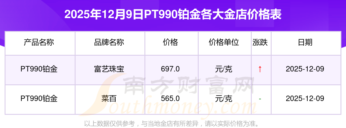 2025年12月9日,周大福、周大福、周大福、周大福、周大福、周大福、周大福、周六福、周六福、周六福、周六福等各大金店品牌PT990鉑金今日價(jià)格如下:周大福1328.0元/克、周大福669.0元/克、周大福1328.0元/克、周大福46520.0、周大福19190.0、周大福41960.0、周大福1165.0元/克、周六福1289.0元/克、周六福613.0元/克、周六福613.0元/克、周六福1184.0元/克。