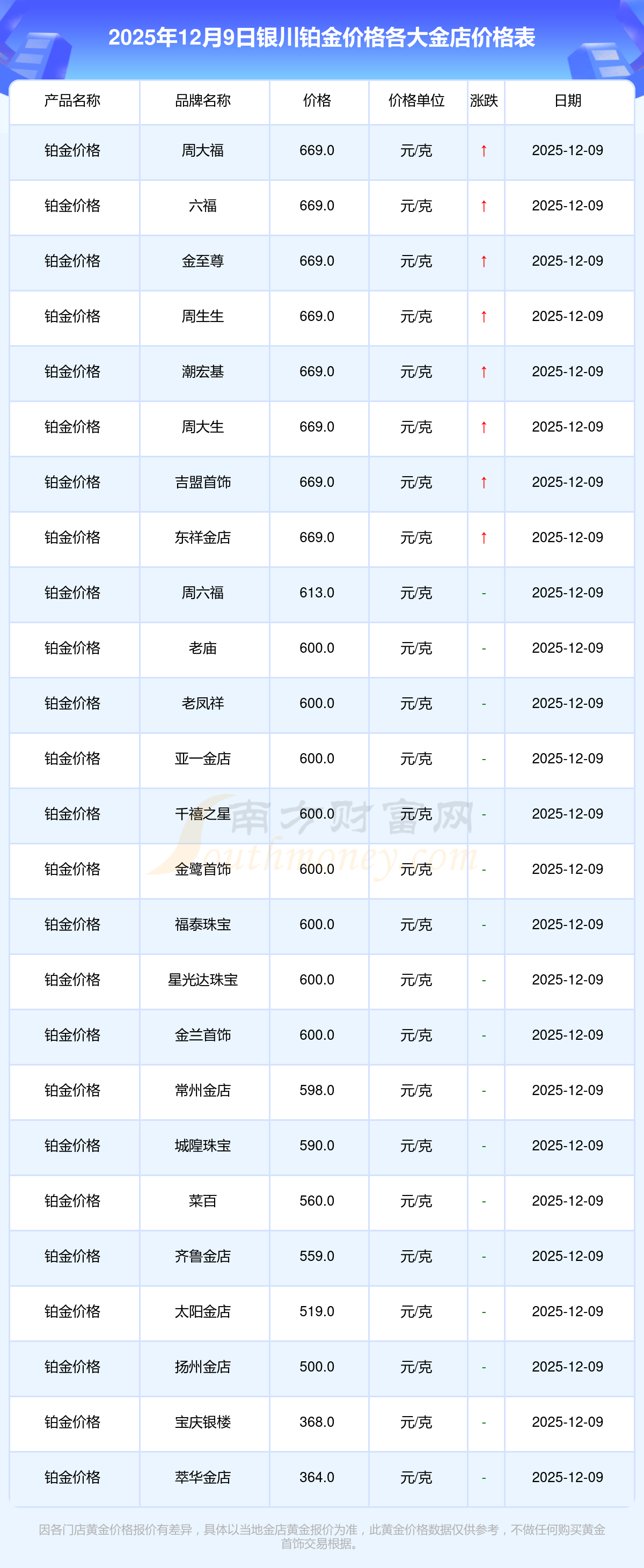 2025年12月9日銀川各大金店鉑金價格一克多少錢_金價今天什么價格
