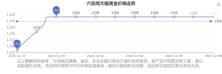 1328.0元/克的黃金價(jià)格,是六安周大福在 2025年12月9日給出的。