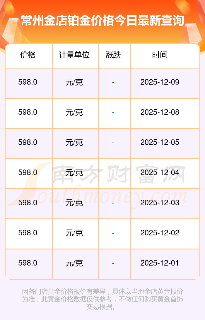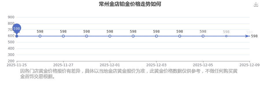 常州金店今日鉑金價格的最新標(biāo)價為598.0元/克。